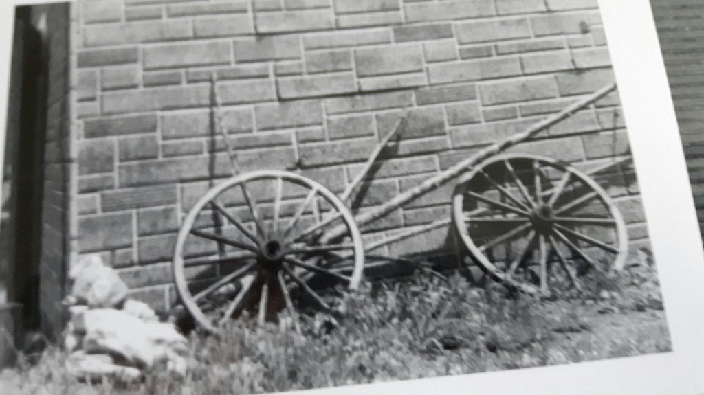 Old wagon wheels lean against the old summer kitchen. Photo provided by Steve Lorincz.